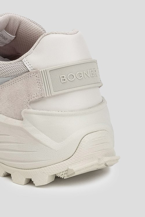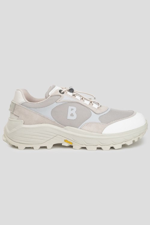 Детали: Женские бежевые кроссовки из замши и текстиля Hike Pro от Bogner (Богнер). Комбинация цветов и материалов, логотип сбоку и на язычке, классическая шнуровка с фиксатором, закругленный носок, подошва Vibram