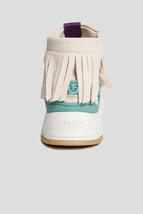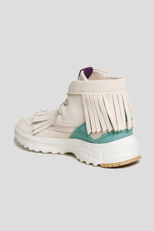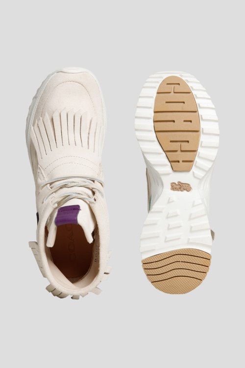 Детали: Женские бежевые хайтопы из натуральной замши от Coach (Коуч). Закругленный носок, спереди шнуровка, контрастные вставки, патч-лого, декор в виде бахромы и замша, кожаная стелька гарантирует необходимый комфорт для повседневной носки, резиновая подошва. На размер 40.5 длина стельки 26 см.