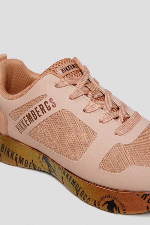 Детали: Женские бежевые текстильные кроссовки от Dirk Bikkembergs (Дирк Биккембергс). Логотип сбоку и на язычке, классическая шнуровка, закругленный носок, брендированная подошва