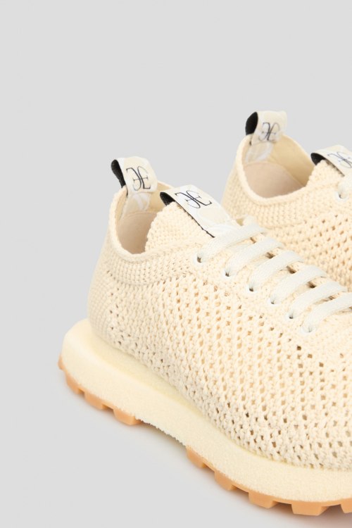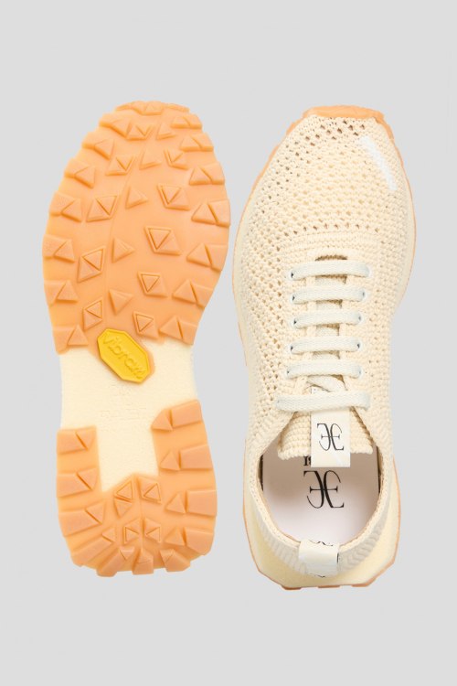 Детали: Женские светло-бежевые текстильные кроссовки от Fabi (Фаби). Вязаный дизайн, классическая шнуровка, две петли для подтягивания, закругленный носок, резиновая подошва. Высота подошвы: 3,5 см