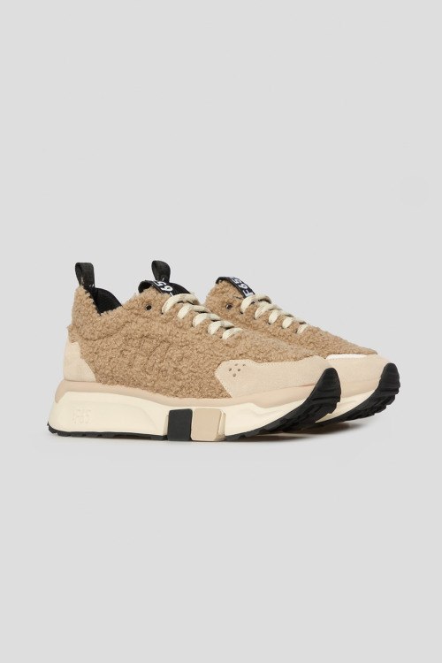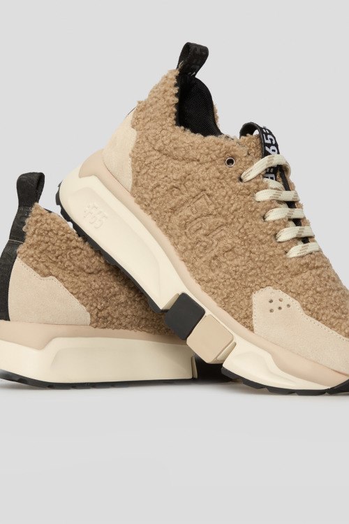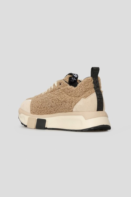 Детали: Женские бежевые кроссовки из замши и текстиля от Fabi (Фаби). Комбинация материалов, логотип сбоку и на язычке, классическая шнуровка, петля для подтягивания сзади, закругленный носок. Высота подошвы: 4,5 см