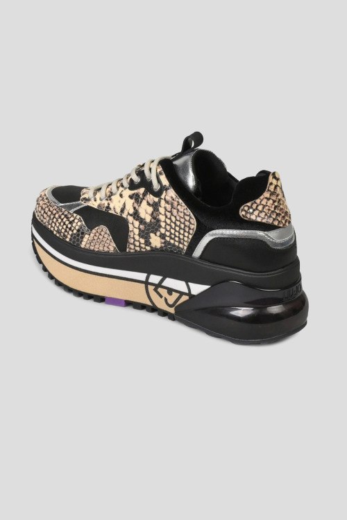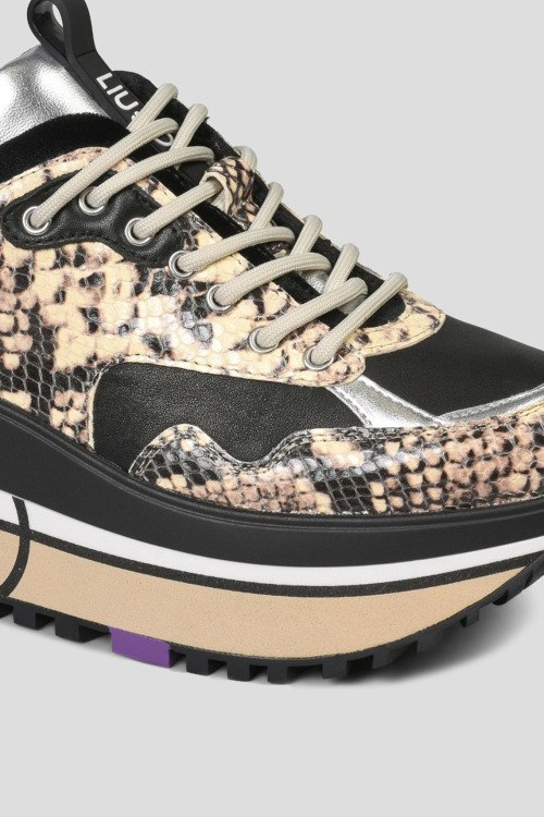 Детали: Женские черно-бежевые кроссовки из текстиля и экокожи от Liu Jo (Лиу Джо). Комбинация материалов и цветов, закругленный носок, спереди шнуровка, логотип бренда, массивная подошва. Платформа: 6 см