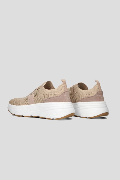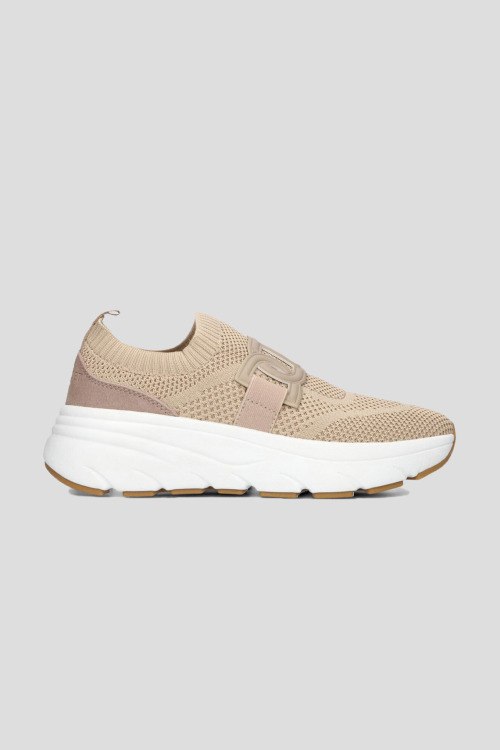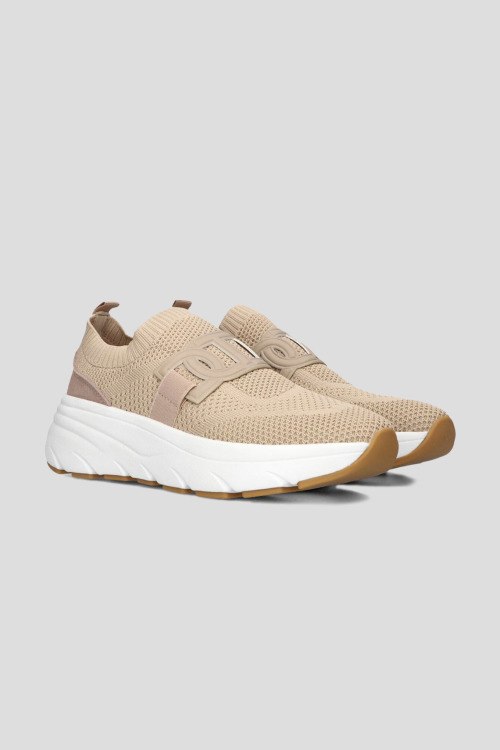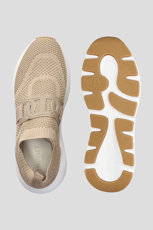 Детали: Женские бежевые кроссовки из текстиля от TWINSET (Твинсет). Закругленный носок, без застежки, эластичная резинка, петля для подтягивания, резиновая подошва белого цвета