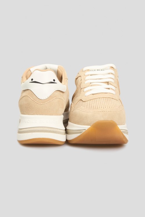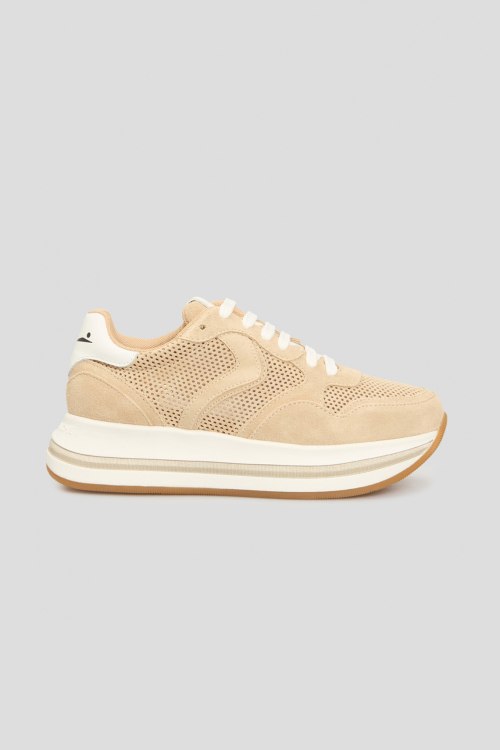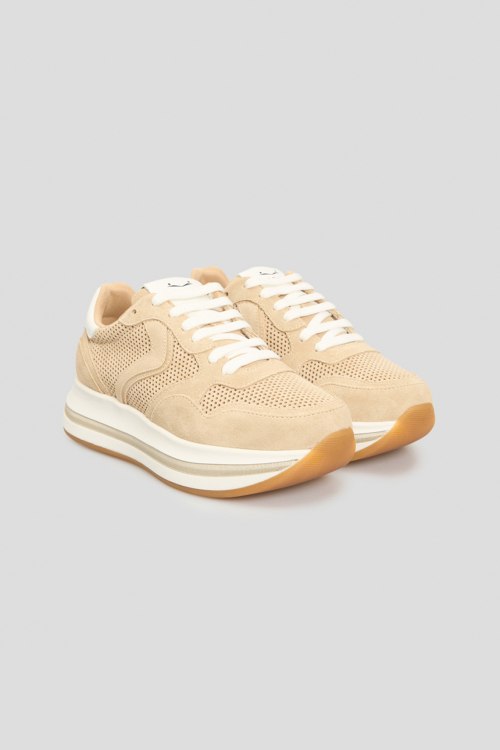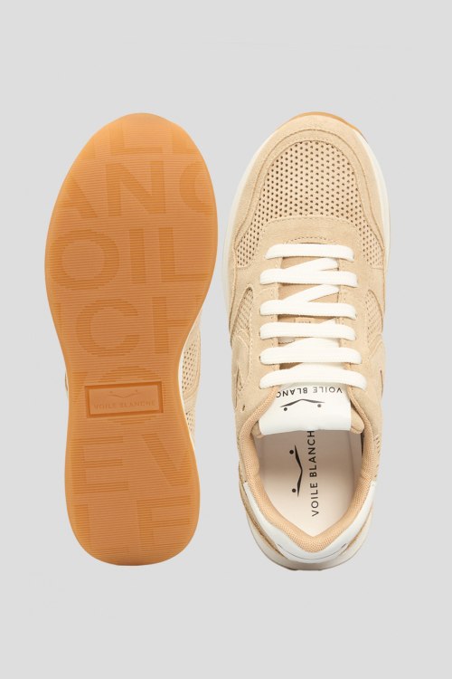 Детали: Женские бежевые замшевые кроссовки от Voile Blanche (Вуаль Бланш). Дизайн с перфорацией, классическая шнуровка, логотип на язычке, закругленный носок, белая подошва. Высота подошвы: 4,5 см