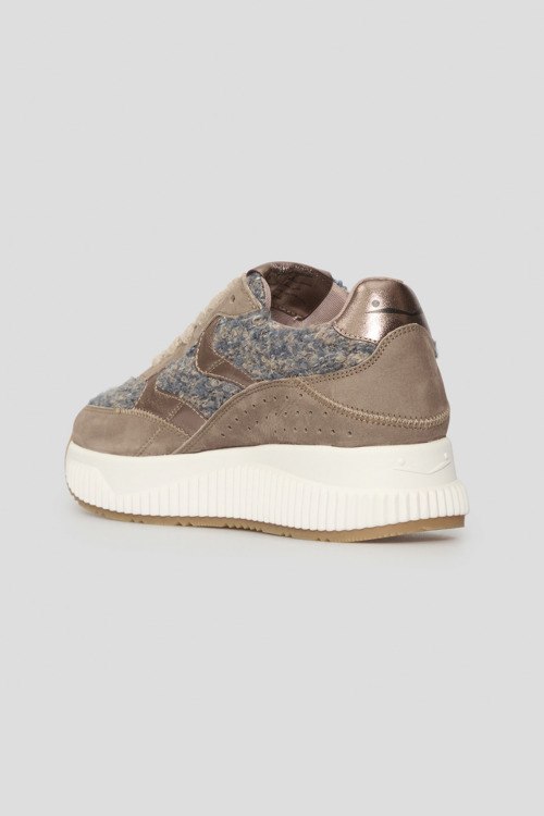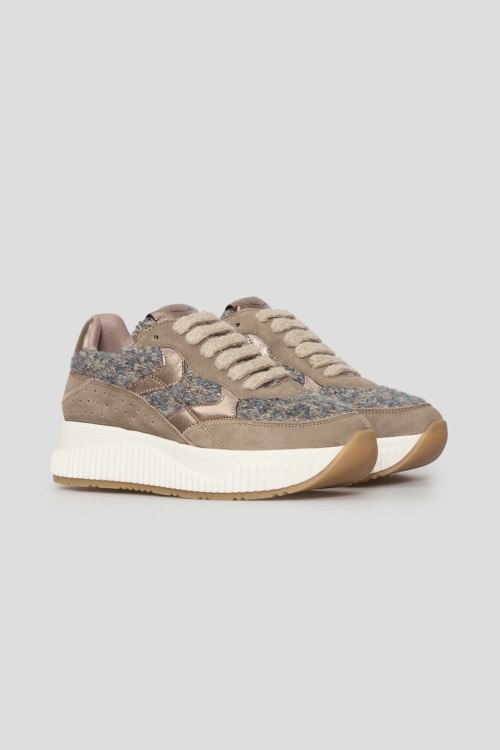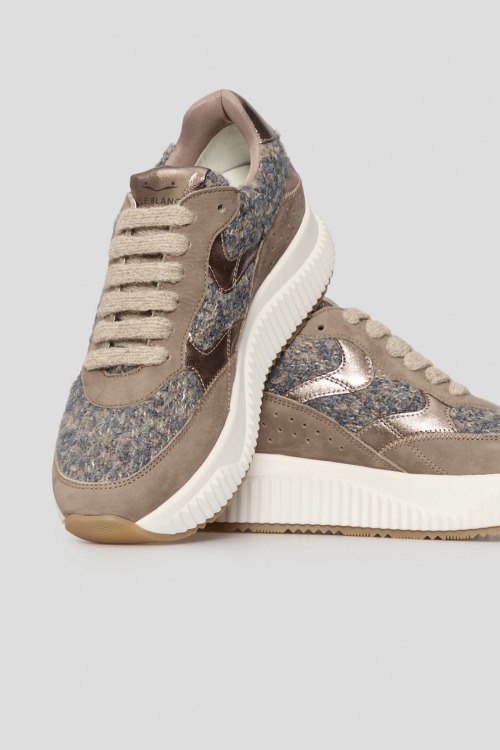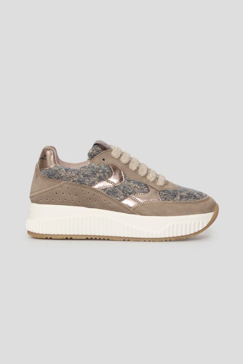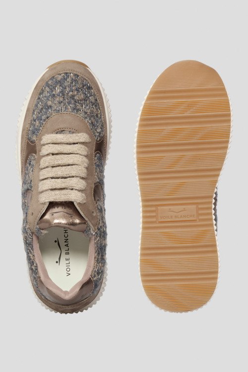 Детали: Женские бежевые кроссовки из нубука и шерсти от Voile Blanche (Вуаль Бланш). Комбинация материалов, логотип на язычке и на пятке, классическая шнуровка, закругленный носок. Высота подошвы: 4 см