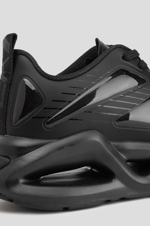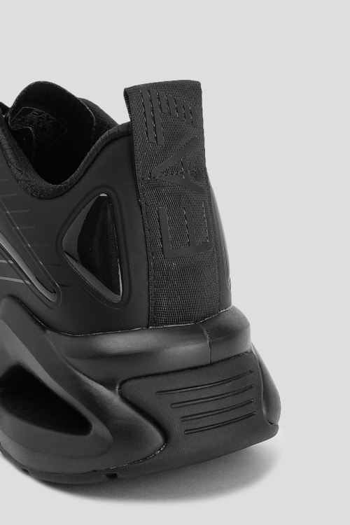 Детали: Мужские черные кроссовки из экокожи от EA7 Emporio Armani (ЕА7 Эмпорио Армани). Модель из гладкой кожи, логотип на язычке, классическая шнуровка, петля для подтягивания сзади, закругленный носок, черная подошва