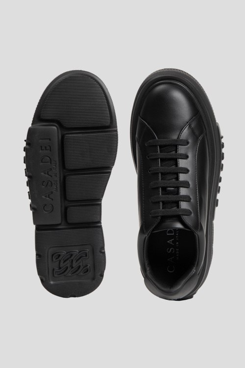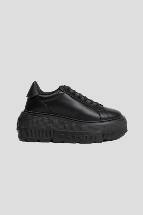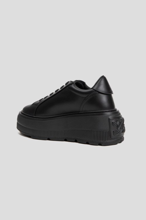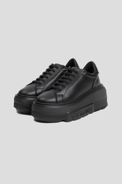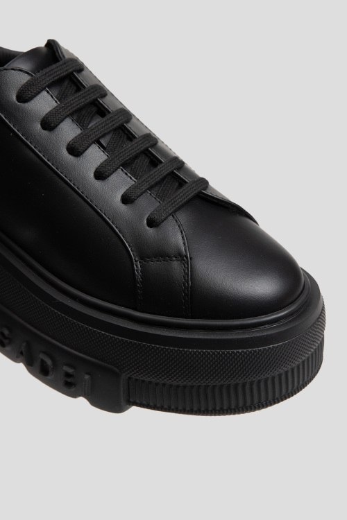 Детали: Женские черные кожаные кроссовки от Casadei (Касадей). Модель из гладкой кожи, логотип на язычке и на пятке, классическая шнуровка, закругленный носок, массивная подошва. Подошва: 7.5 см
