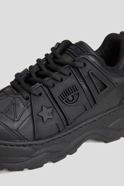 Детали: Женские черные кроссовки из натуральной кожи от Chiara Ferragni (Кьяра Ферраньи). Резиновые вставки с логотипом, классическая шнуровка, петля для подтягивания сзади, закругленный носок