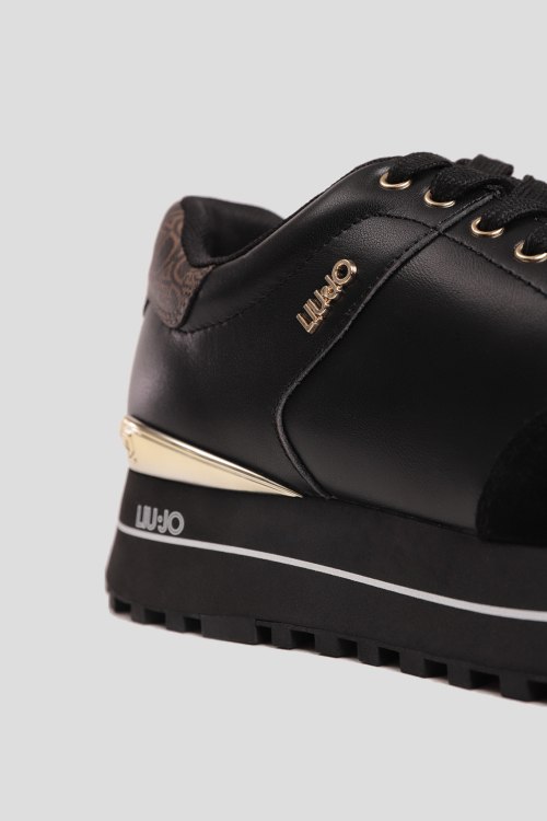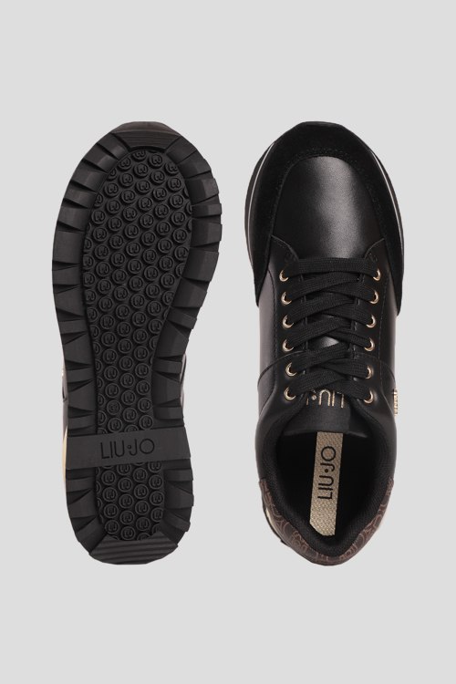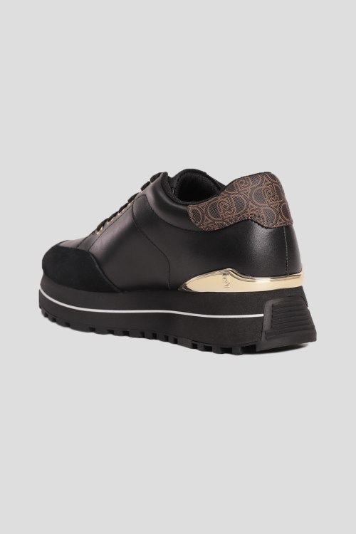 Детали: Женские черные кожаные кроссовки от Liu Jo (Лиу Джо). Модель из гладкой кожи, замшевые вставки, логотип сбоку и на язычке, классическая шнуровка, закругленный носок