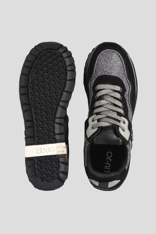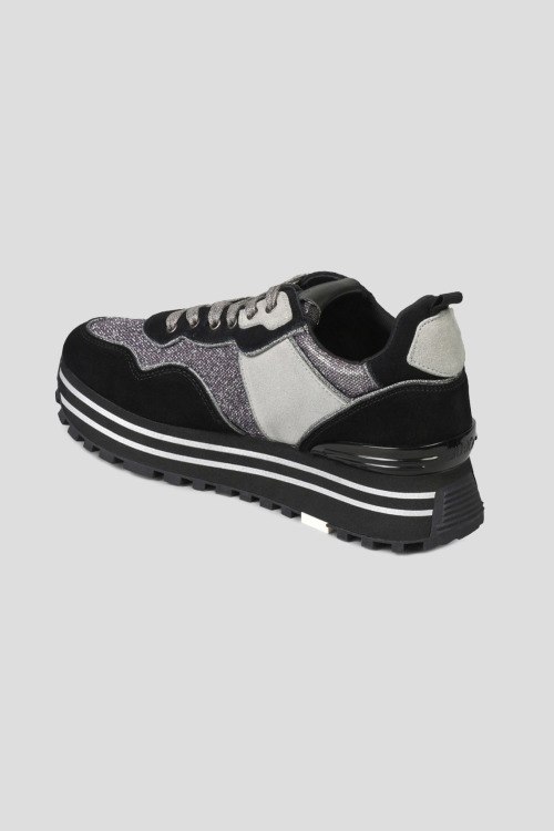 Детали: Женские черные кроссовки из замши и текстиля от Liu Jo (Лиу Джо). Комбинация материалов, закругленный носок, спереди шнуровка, логотип бренда, рельефная подошва. Платформа: 4 см