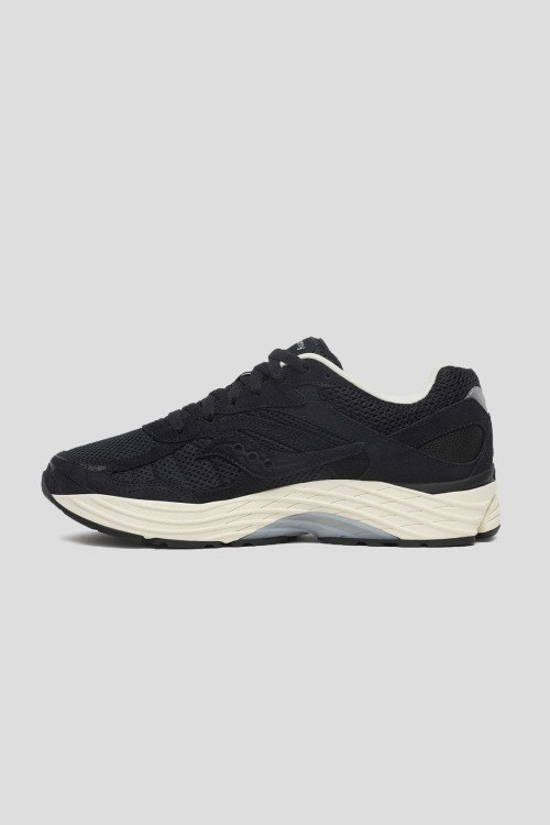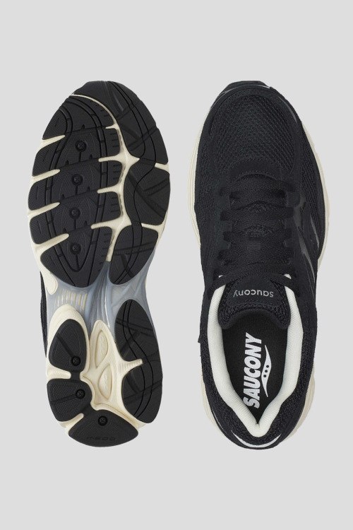 Детали: Женские черные текстильные кроссовки Progrid Omni 9 Premium от Saucony (Сайкони). Бежевые замшевые вставки, логотип сбоку и на язычке, классическая шнуровка, закругленный носок, резиновая подошва