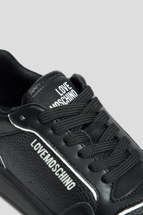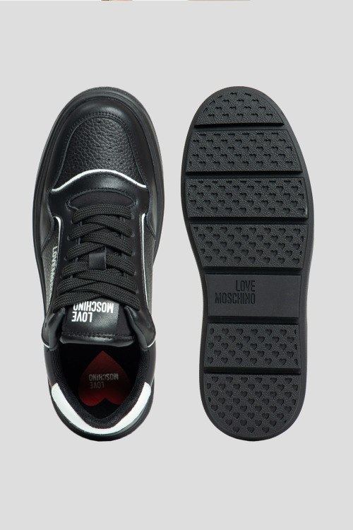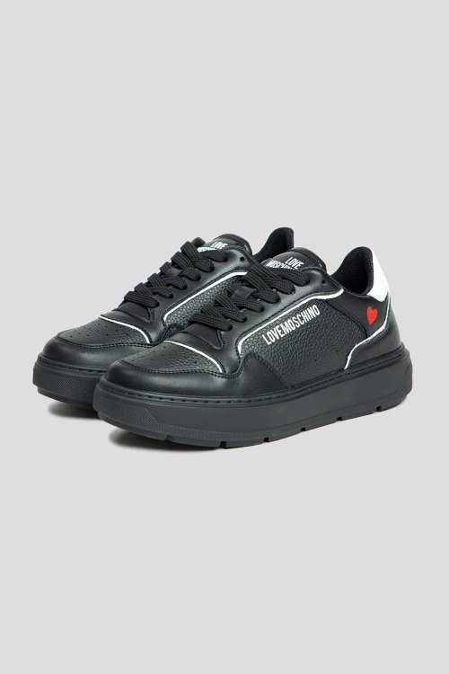 Детали: Женские черные кожаные кроссовки от Love Moschino (Лав Москино). Модель из гладкой и зернистой кожи, логотип сбоку и на язычке, вышитое сердце, классическая шнуровка, закругленный носок. Высота подошвы: 4 см