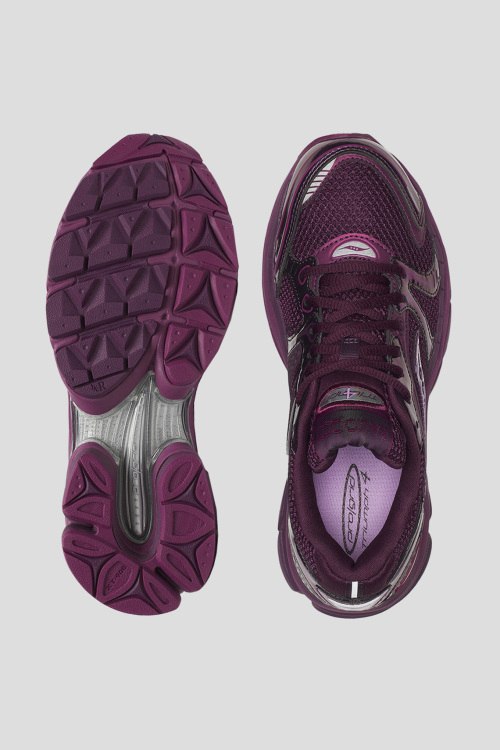 Детали: Женские фиолетовые кроссовки ProGrid Triumph 4 из текстиля от Saucony (Сайкони). Комбинированный дизайн, закругленный носок, спереди классическая шнуровка, петли для подтягивания, рельефная подошва, логотип бренда
