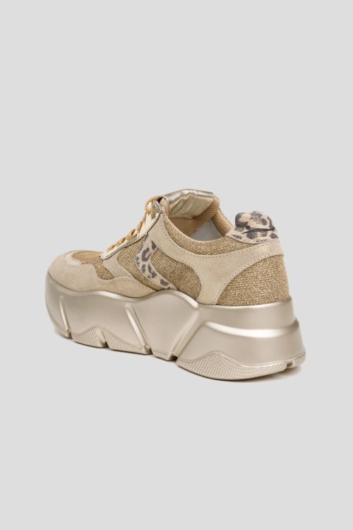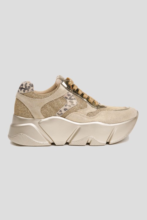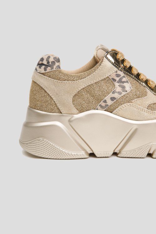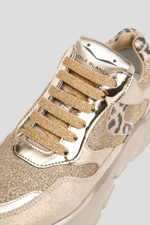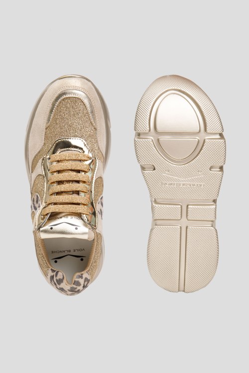 Детали: Женские золотистые кроссовки из натуральной кожи и замши от Voile Blanche (Вуаль Бланш). Закругленный носок, комбинированный дизайн, спереди классическая шнуровка, логотип бренда на язычке, массивная подошва, кожаная стелька с логотипом бренда. Высота подошвы: 3,5-5,5 см