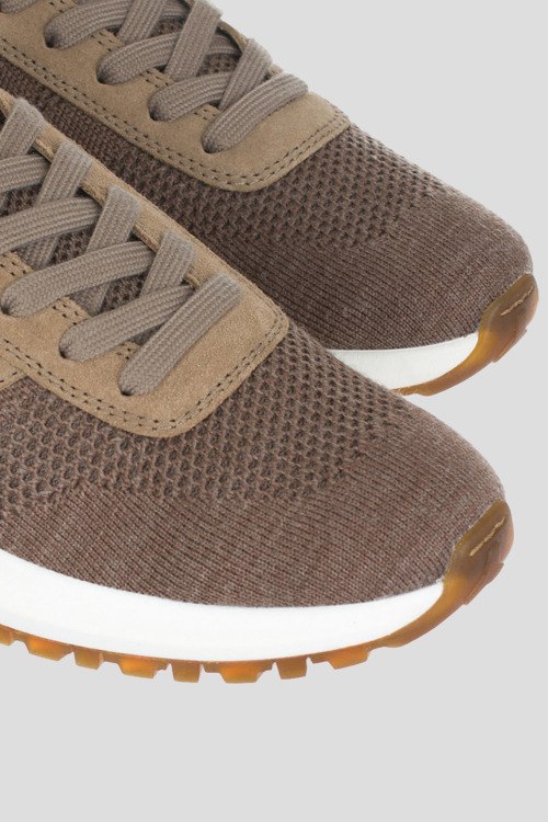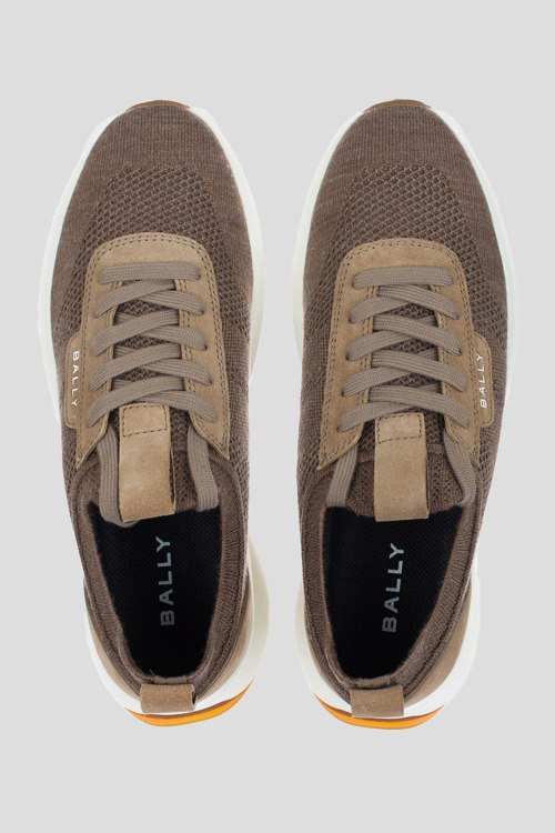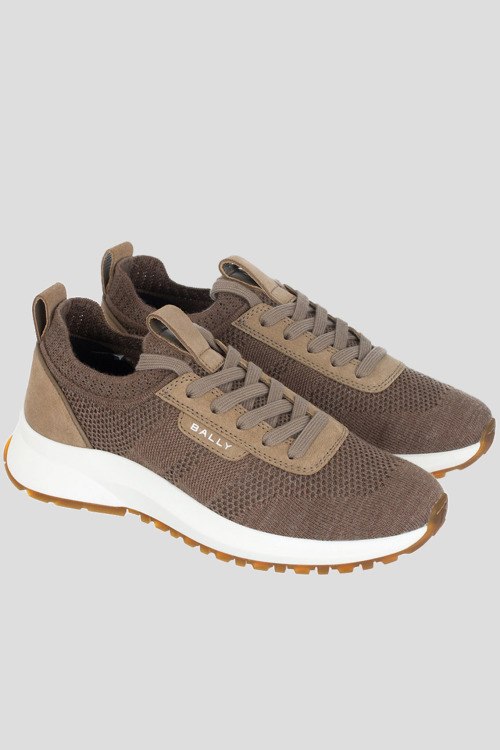 Детали: Женские коричневые кроссовки из текстиля от Bally (Балли). Комбинация цветов и материалов, закругленный носок, спереди классическая шнуровка, резиновая подошва