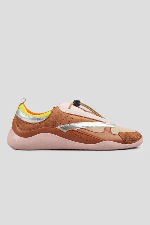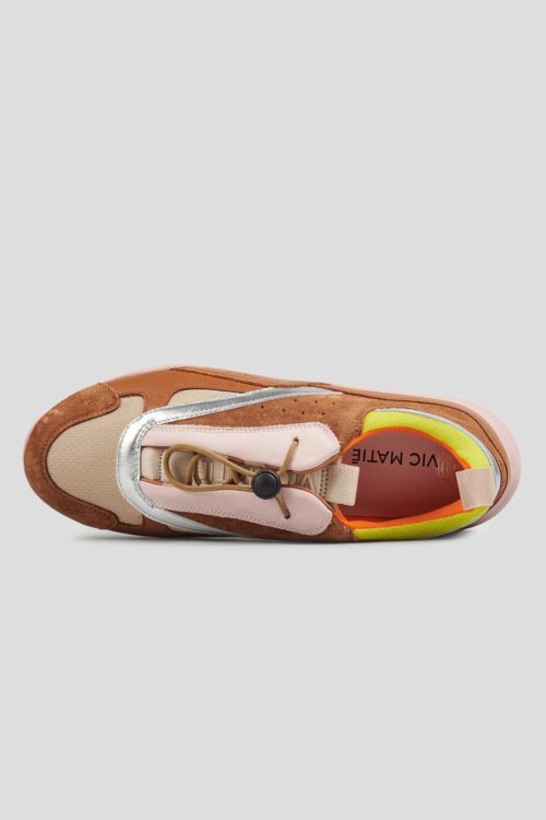 Детали: Женские коричневые кроссовки из кожи и замши от Vic Matie (Вик Матие). Комбинация цветов и материалов, закругленный носок, спереди шнуровка с утяжкой, петли для подтягивания, резиновая подошва