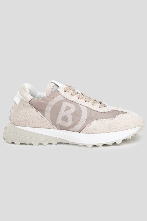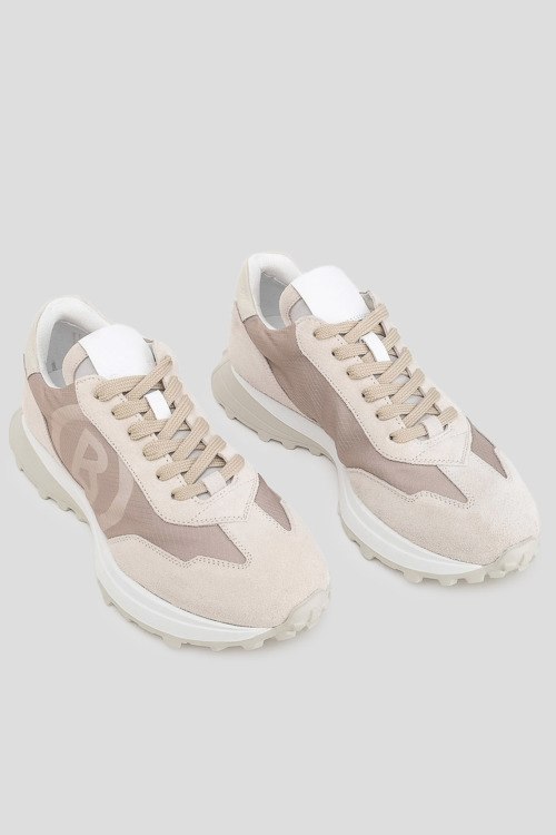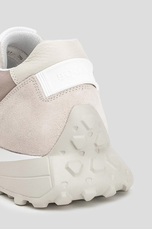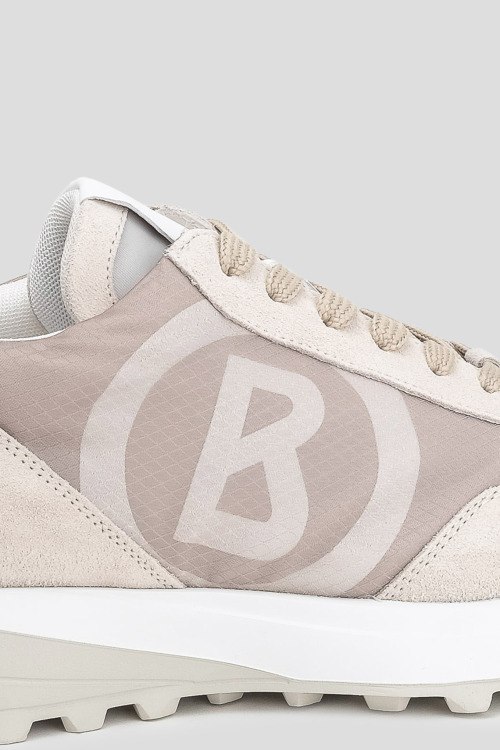 Детали: Женские кроссовки молочного оттенка из замши и текстиля Charlotte от Bogner (Богнер). Комбинация цветов и материалов, логотип сбоку и на язычке, классическая шнуровка, закругленный носок, белая подошва