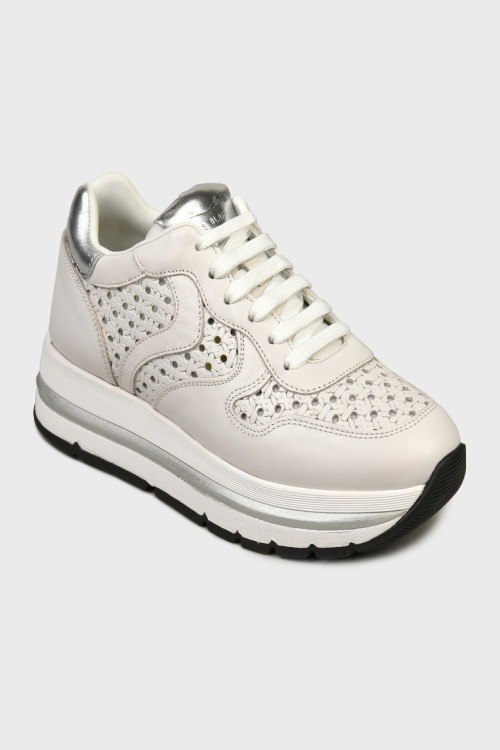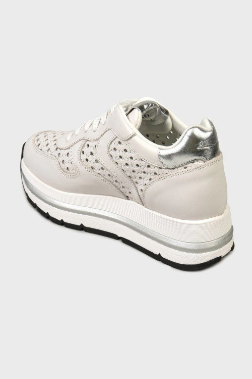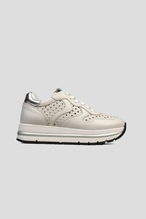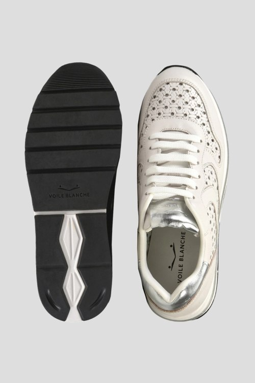 Детали: Женские кремовые кожаные кроссовки от Voile Blanche (Вуаль Бланш). Модель из гладкой кожи, дизайн с перфорацией, логотип на язычке, классическая шнуровка, закругленный носок