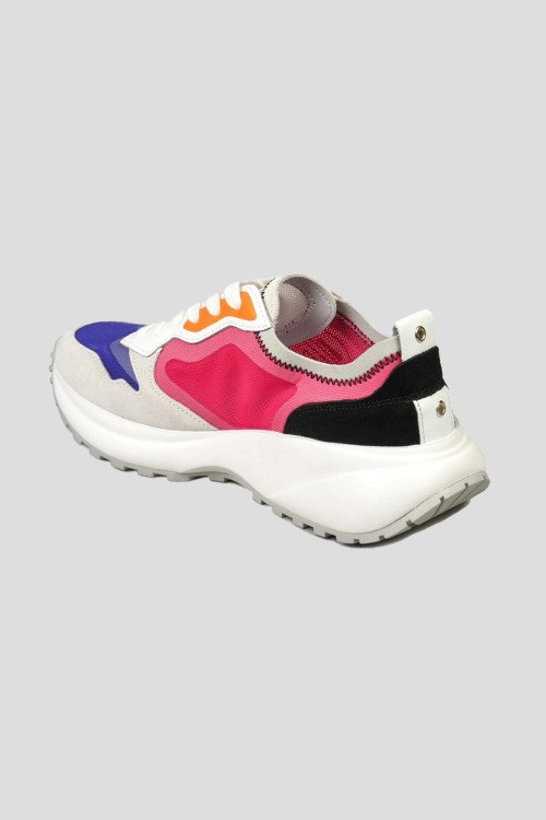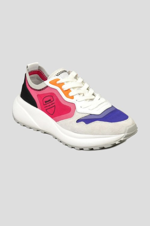 Детали: Женские разноцветные кроссовки из замши и текстиля от Blauer (Блауэр). Комбинация материалов, логотип сбоку и на язычке, классическая шнуровка, закругленный носок, белая подошва
