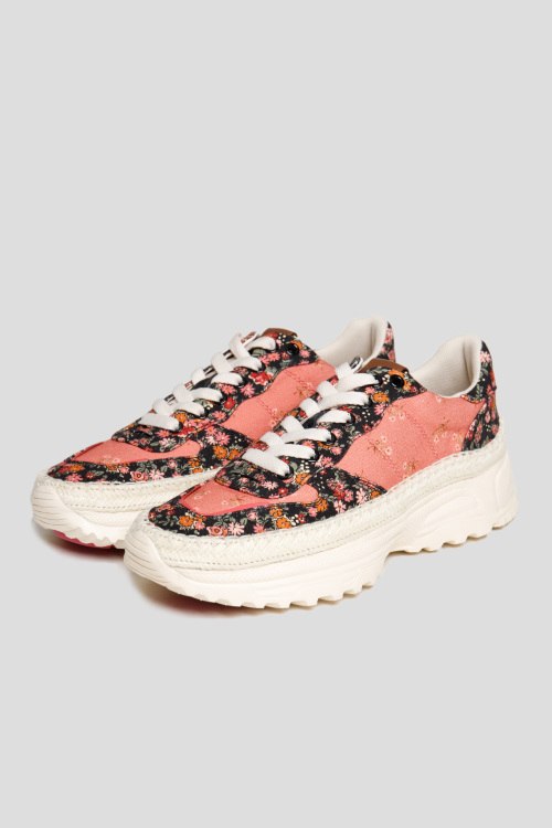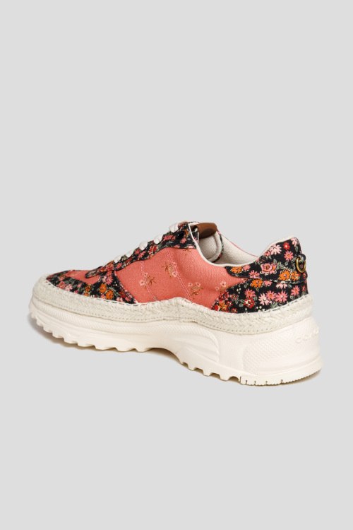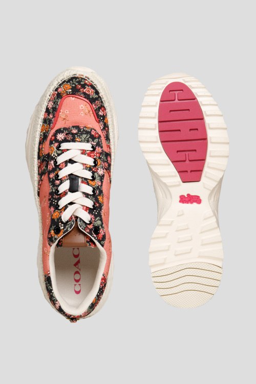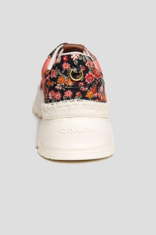 Детали: Женские кроссовки из текстиля от Coach (Коуч). Дизайн с цветочным принтом, закругленный носок, спереди классическая шнуровка, текстильная подкладка, мягкая стелька с лого, белая резиновая подошва с плетеным декором вдоль, нашивка с логотипом на язычке, металлический логотип бренда на заднике. Длина изделия по стельке на размер 38: 23,5 см
