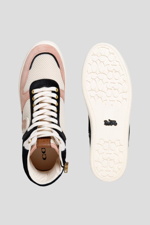 Детали: Женские комбинированные сникерсы из натуральной замши и текстиля от Coach (Коуч). Дизайн в виде комбинации цветов и материалов, закругленный носок, спереди классическая шнуровка, сбоку застежка на молнию, патч-лого, резиновая подошва белого цвета, модель плотно и надежно прилегают к ногам, обеспечивая плотную фиксацию и поддержку. Длина изделия по стельке на размер 38,5: 24,5см, застежка шнуровка.