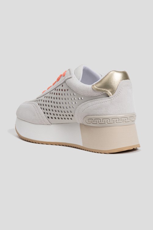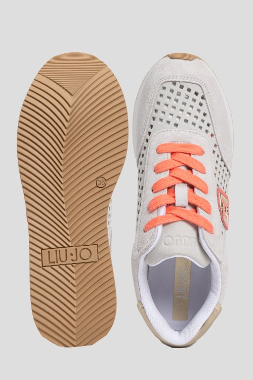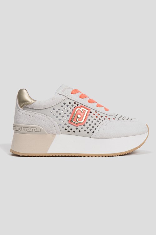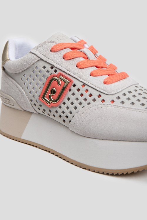 Детали: Женские серые кроссовки из замши и кожи от Liu Jo (Лиу Джо). Закругленный носок, перфорированный дизайн, спереди классическая шнуровка, патч-лого, толстая подошва 4 см