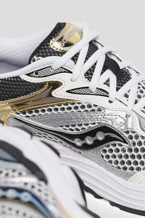 Детали: Женские серые текстильные кроссовки Progrid Omni 9 от Saucony (Сайкони). Комбинация цветов и материалов, логотип сбоку и на язычке, классическая шнуровка, закругленный носок, резиновая подошва