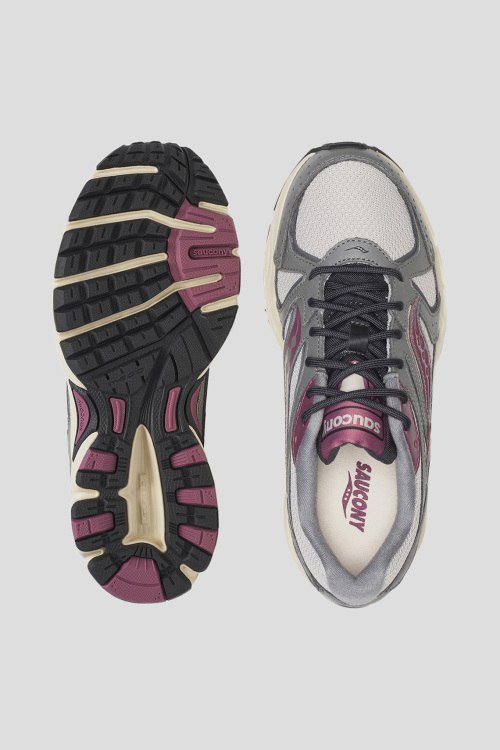 Детали: Женские серые кроссовки Ride Millennium ииз текстиля от Saucony (Сайкони). Комбинированный дизайн, закругленный носок, спереди классическая шнуровка, рельефная подошва, логотип бренда