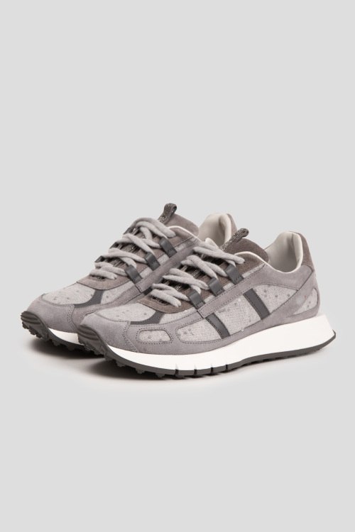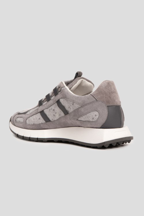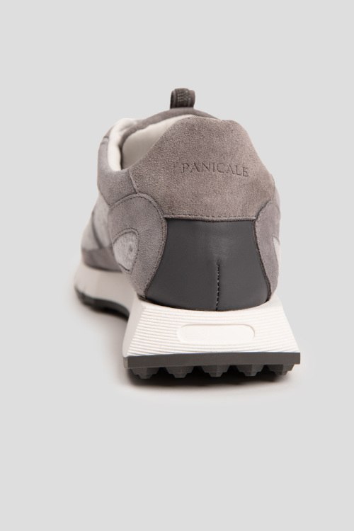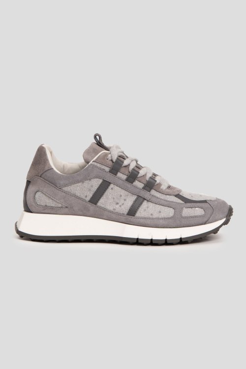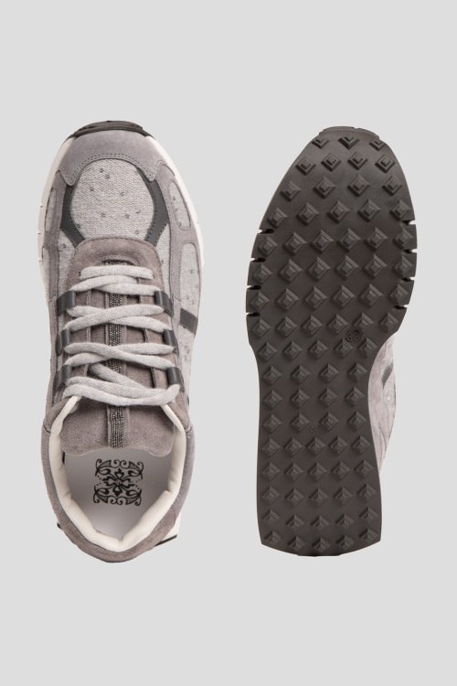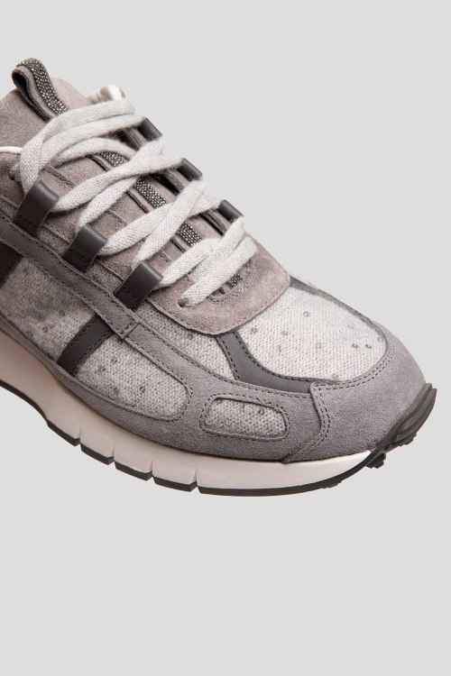 Детали: Женские серые кроссовки из замши и текстиля от Panicale Cashmere (Паникале Кашемир). Комбинация материалов, петля для подтягивания декорирована стразами, классическая шнуровка, закругленный носок, кожаная стелька, резиновая подошва