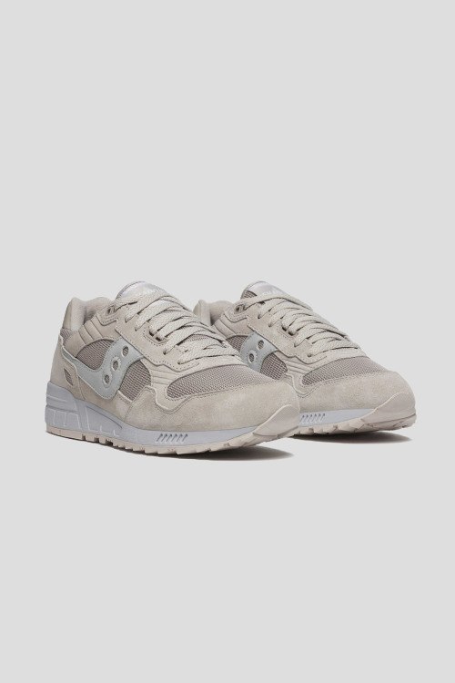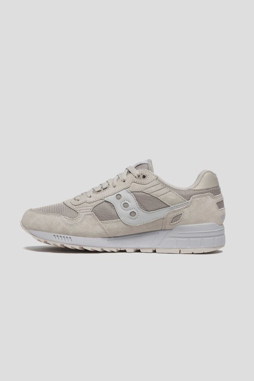 Женские светло-серые кроссовки Shadow 5000 из замши и текстиля от Saucony (Сайкони). Комбинация материалов, логотип на язычке и на пятке, классическая шнуровка, закругленный носок, резиновая подошва