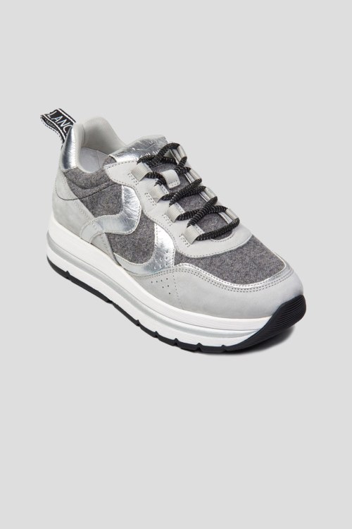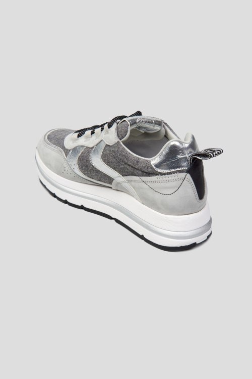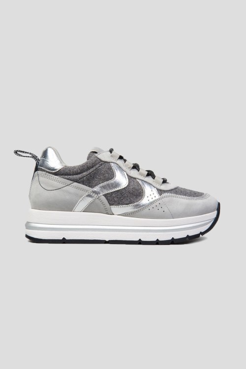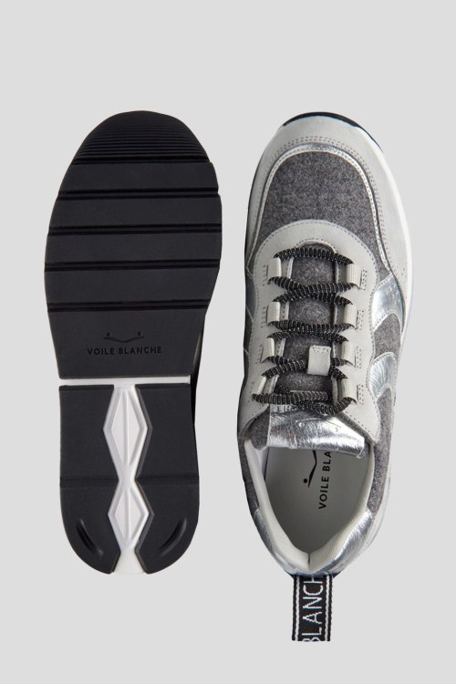 Детали: Женские серые кроссовки из нубука и текстиля от Voile Blanche (Вуаль Бланш). Комбинация цветов и материалов, на язычке, классическая шнуровка, закругленный носок. Подошва: 4 см