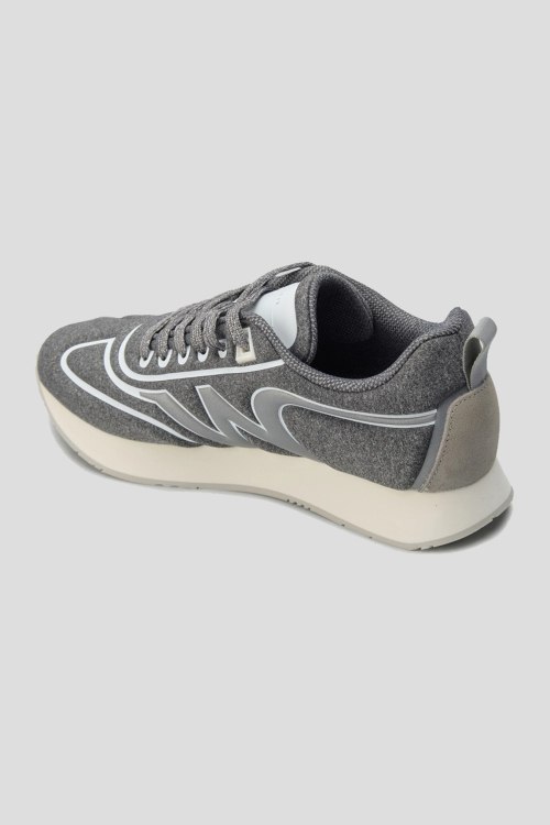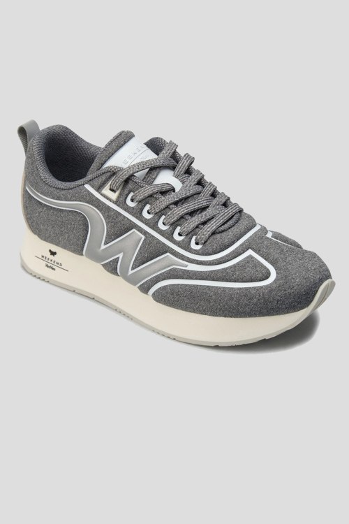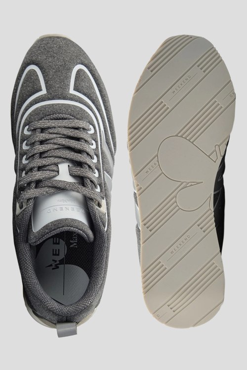 Детали: Женские темно-серые текстильные кроссовки Rarohf от Max Mara Weekend (Макс Мара Викенд). Логотип сбоку и на язычке, классическая шнуровка, петля для подтягивания сзади, закругленный носок