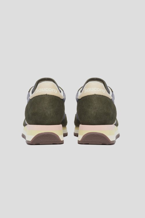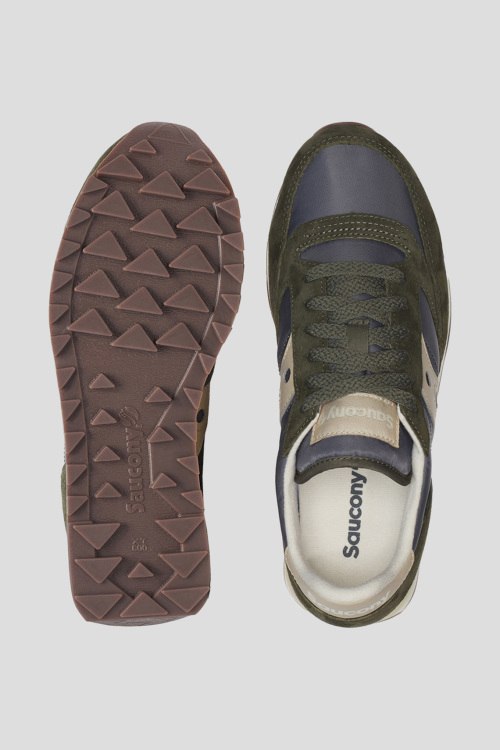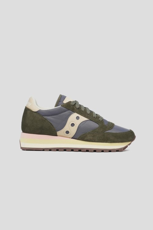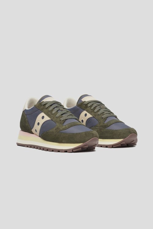 Детали: Женские зеленые кроссовки Jazz Triple из текстиля и замши от Saucony (Сайкони). Комбинация материалов, закругленный носок, спереди классическая шнуровка, патч-лого, брендированные вставки, рельефная подошва
