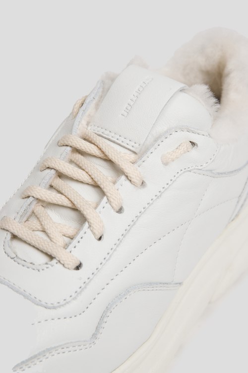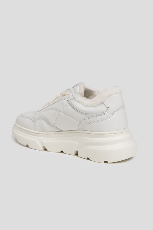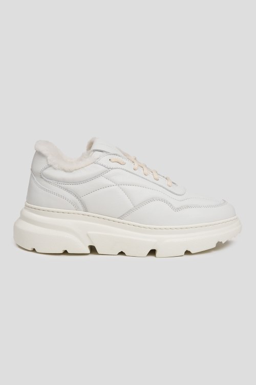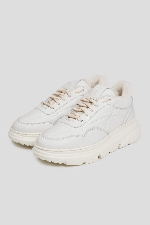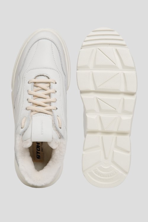 Детали: Женские белые кроссовки из натуральной кожи от Stokton (Стоктон). Закругленный носок, спереди классическая шнуровка, массивная подошва, утепленная модель мехом