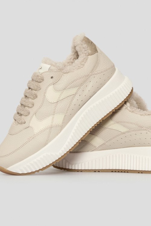 Детали: Женские светло-бежевые кожаные кроссовки на меху от Voile Blanche (Вуаль Бланш). Модель из зернистой кожи, логотип на язычке и на пятке, классическая шнуровка, закругленный носок, внутри на меху. Высота подошвы: 4,5 см
