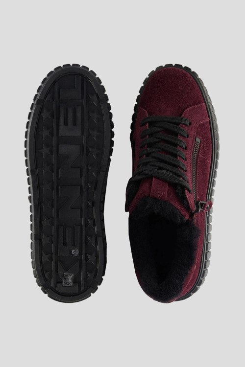 Детали: Женские бордовые замшевые кеды на меху от Kennel & Schmenger (Кеннел энд Шменгер). Меховая отделка, классическая шнуровка, две застежки-молнии по бокам, закругленный носок, внутри на меху. Подошва: 4.5 см