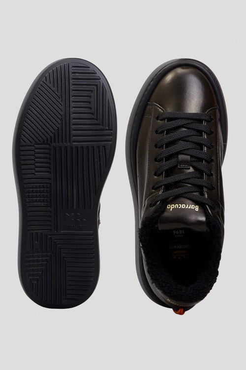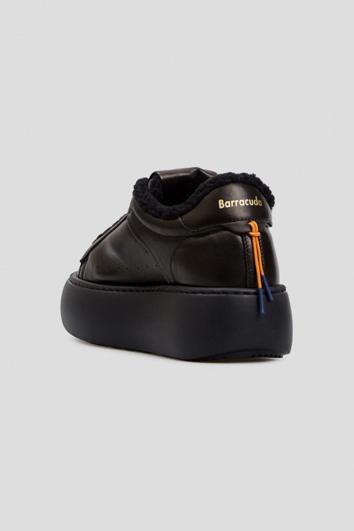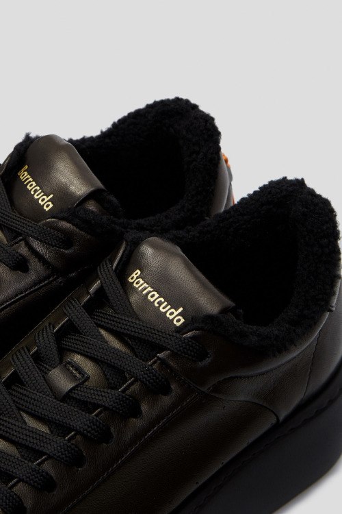 Детали: Женские черные кожаные кеды на меху от Barracuda (Барракуда). Логотип на язычке и на пятке, классическая шнуровка, закругленный носок, черная резиновая подошва. Высота подошвы: 5 см