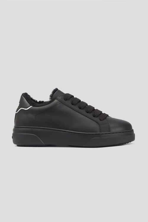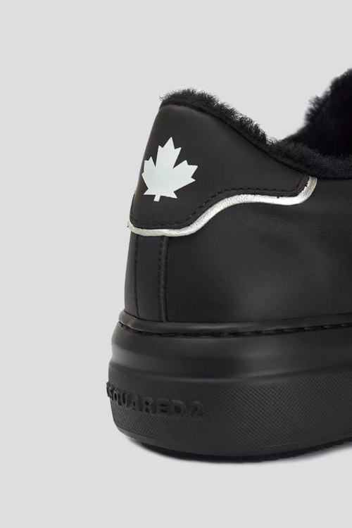 Детали: Женские черные кожаные кеды на меху от Dsquared2 (Дискваред). Модель из гладкой кожи, логотип на язычке и на пятке, классическая шнуровка, закругленный носок, внутри на меху