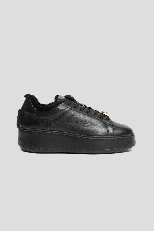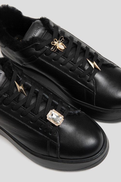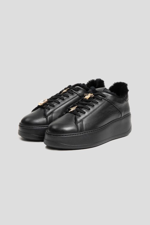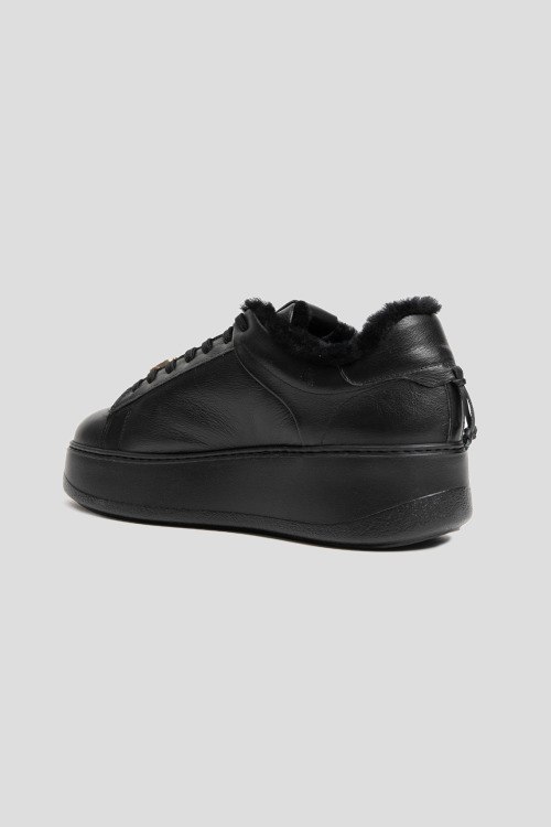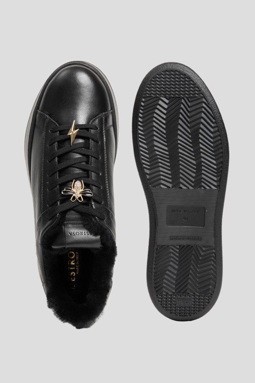 Детали: Женские черные кроссовки из натуральной кожи от L'Estrosa (Лестроса). Закругленный носок, спереди классическая шнуровка, тиснение с логотипом бренда на язычке, модель утепленная мехом, рельефная подошва. Измерения: платформа 5,5 см
