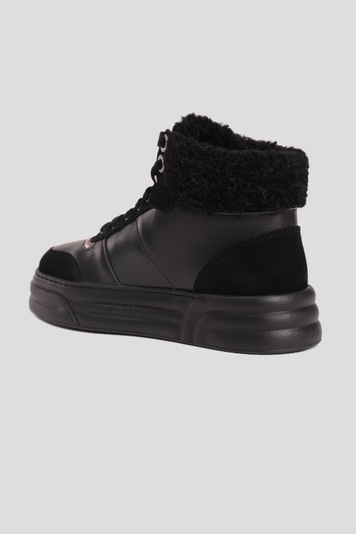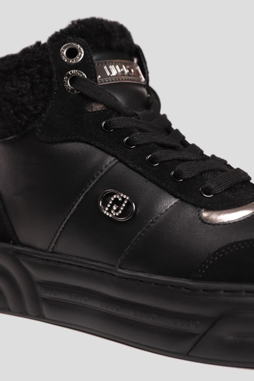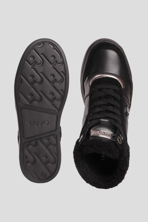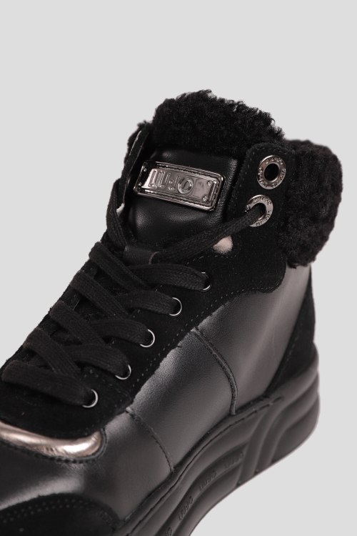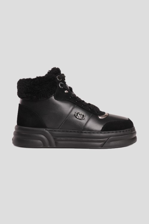 Детали: Женские черные кожаные хайтопы на меху от Liu Jo (Лиу Джо). Модель из гладкой кожи, замшевые вставки, логотип сбоку и на язычке, меховая отделка, классическая шнуровка, закругленный носок. Высота подошвы: 3.5 см