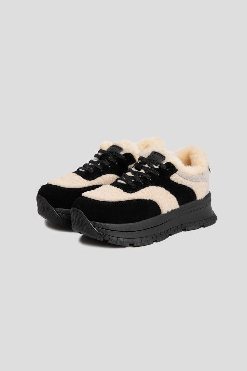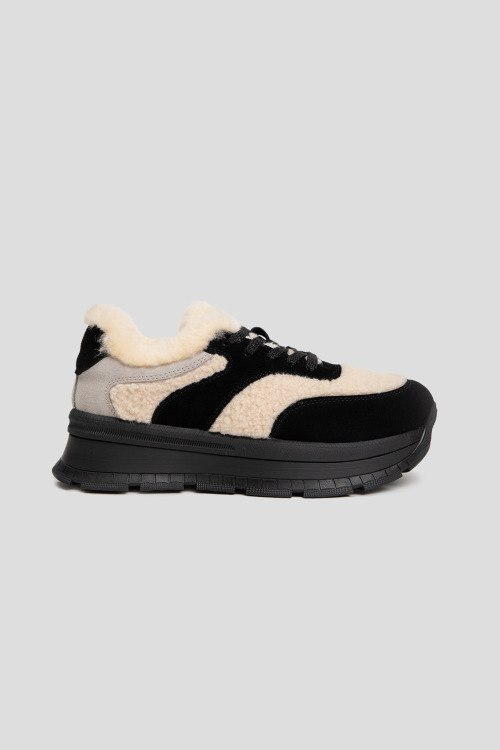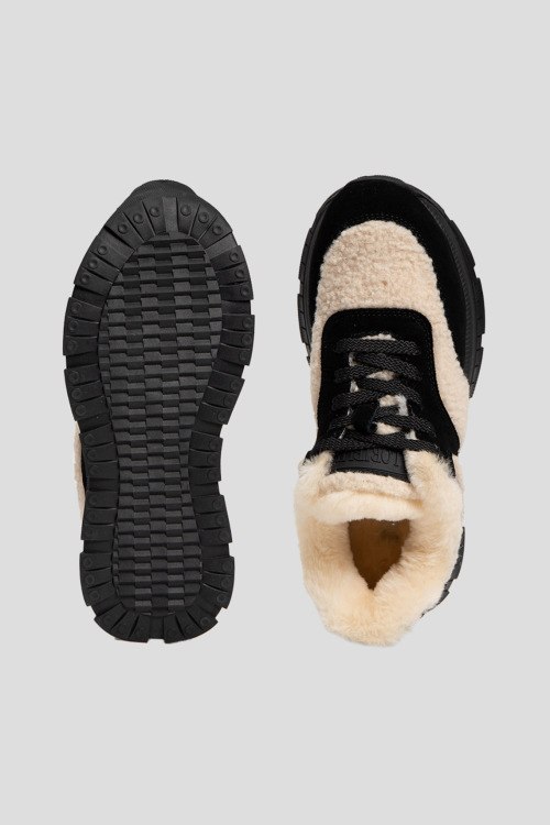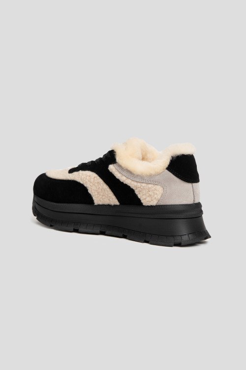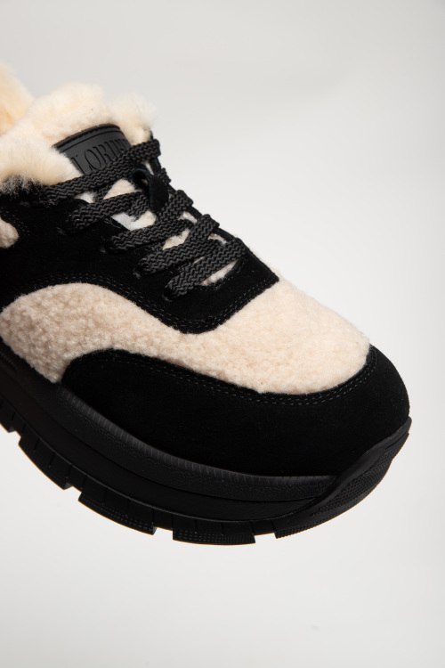 Детали: Женские черно-бежевые замшевые кроссовки на меху от Loriblu (Лориблу). Меховая отделка, нашивка с логотипом на язычке, классическая шнуровка, закругленный носок, внутри на меху. Подошва: 4.5 см