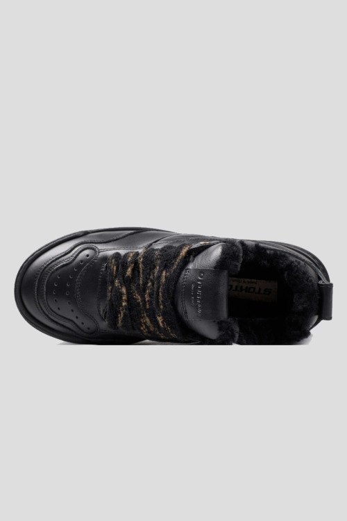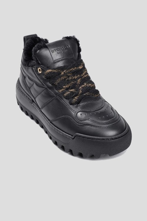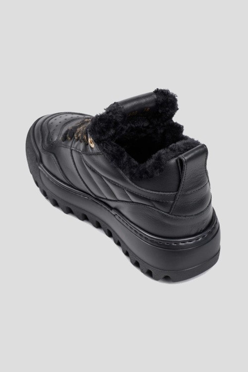 Детали: Женские черные кожаные кроссовки на меху от Stokton (Стоктон). Модель из гладкой кожи, нашивка с логотипом на язычке, бежево-черные шнурки, закругленный носок, ребристая подошва, внутри на меху. Подошва: 5 см