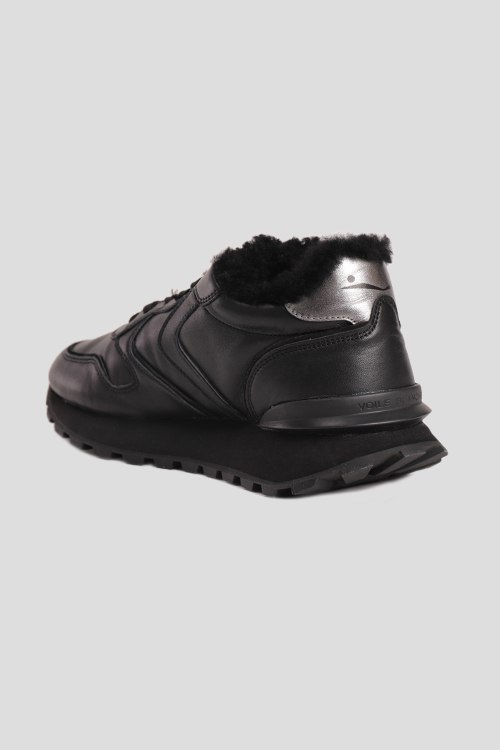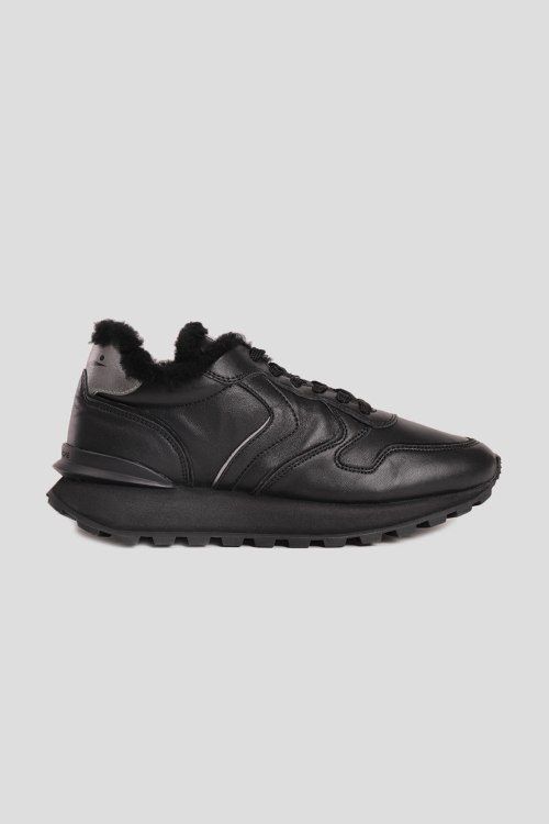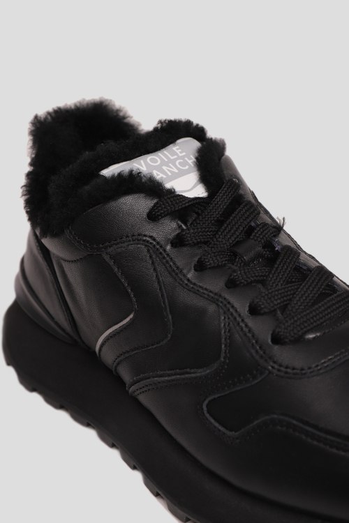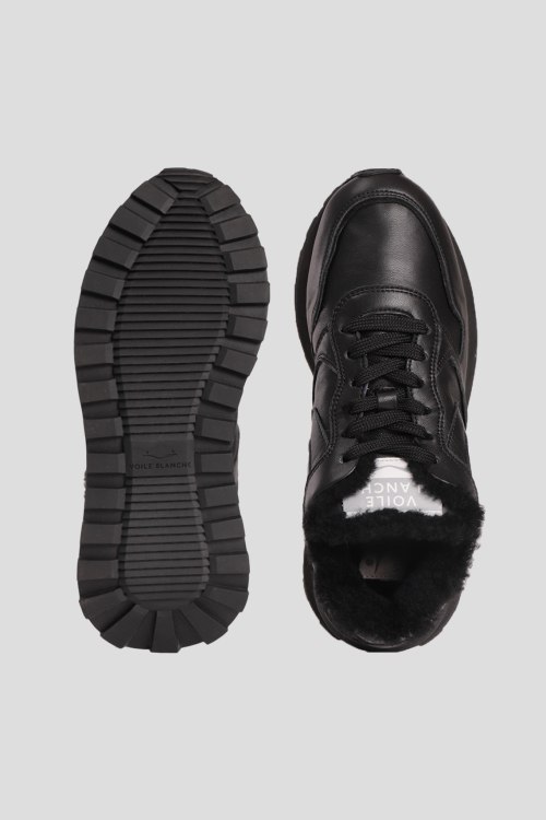 Детали: Женские черные кожаные кроссовки на меху от Voile Blanche (Вуаль Бланш). Модель из гладкой кожи, логотип на язычке, классическая шнуровка, закругленный носок, внутри на меху