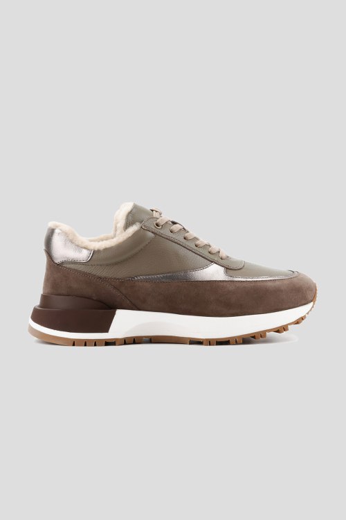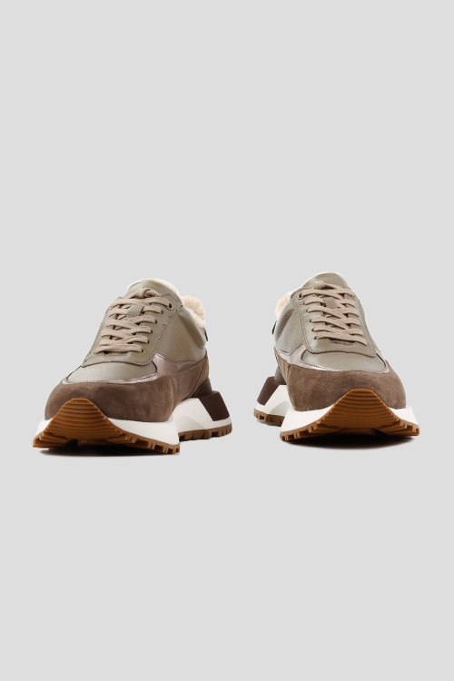 Детали: Женские кожаные кроссовки на меху цвета тауп от Le Berdes (Ле Бердес). Замшевые вставки, классическая шнуровка, закругленный носок, резиновая подошва. Замеры: длина стельки: размер 36 (23,5 см), 37 (24 см), 38 (24,5 см), 39 (25 см),40 (25,5)