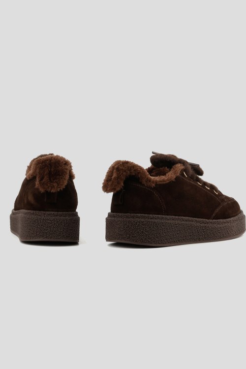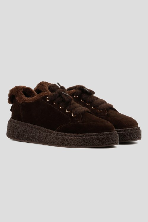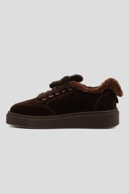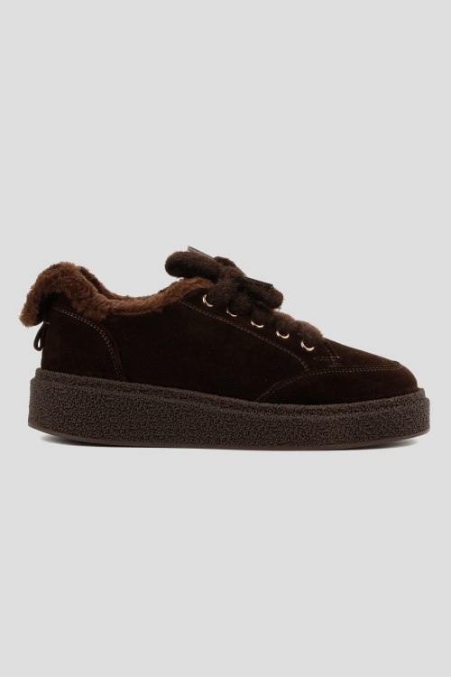 Детали: Женские темно-коричневые замшевые кеды на меху от Le Berdes (Ле Бердес). Меховая отделка, пушистые шнурки, закругленный носок, внутри на меху. Замеры: длина стельки: размер 35 (23 см), 36 (23,5 см), 37 (24 см), 38 (24,5 см), 39 (25 см),40 (25,5)