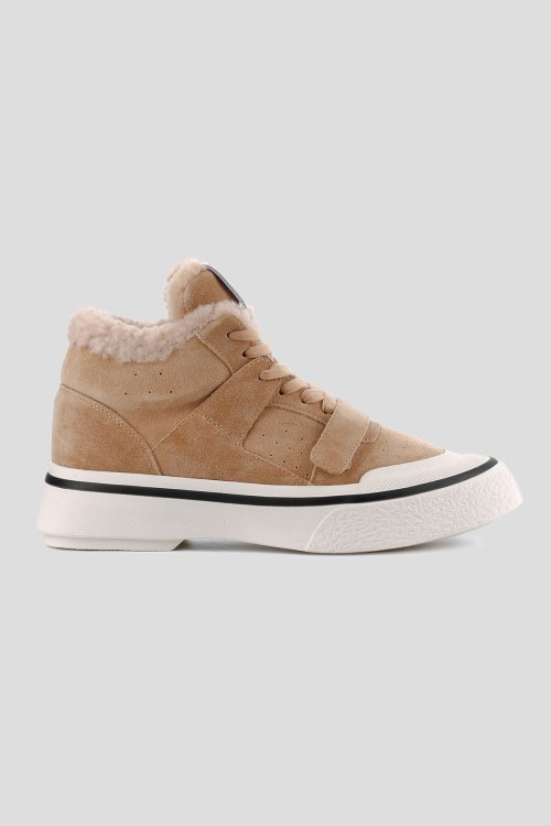 Детали: Женские коричневые хайтопы из замша от Le Berdes (Ле Бердес). Закругленный прорезиненный носок, комбинированный дизайн, перфорация, спереди классическая шнуровка, меховая отделка, высокий язычок с нашивкой