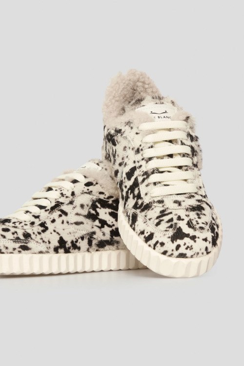 Детали: Женские кеды молочного оттенка из кожи и шерсти на меху от Voile Blanche (Вуаль Бланш). Узор по всей поверхности, логотип на язычке и на пятке, классическая шнуровка, закругленный носок, внутри на меху. Высота подошвы: 2,5 см