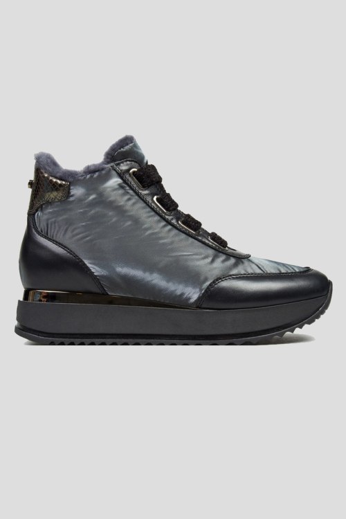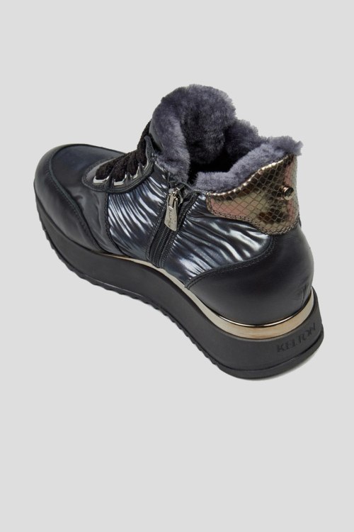 Детали: Женские серые кроссовки из кожи и текстиля на меху от Kelton (Кельтон). Комбинация материалов, классическая шнуровка, застежка-молния сбоку, закругленный носок, внутри на меху. Высота подошвы: 4 см