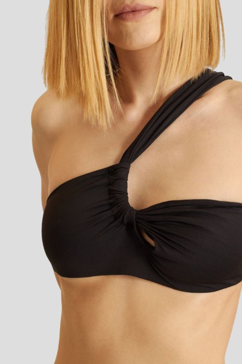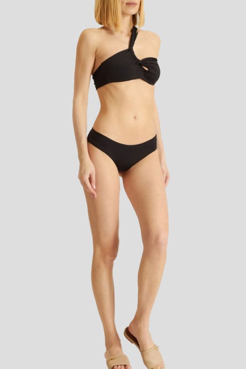 Женский черный раздельный купальник от Federica Tosi (Федерика Тоси). Лиф со шлейкой на одно плечо, трусики-бразилиана со средней посадкой.