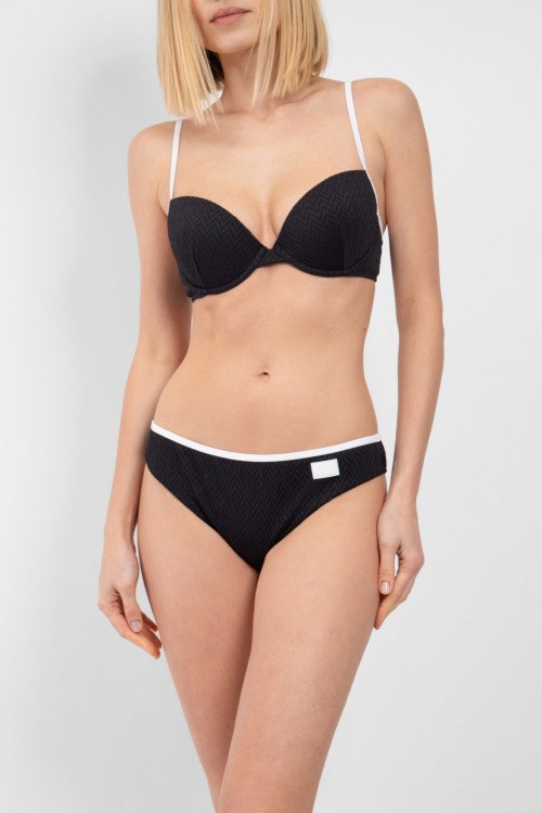 Женский черный купальник из полиэстера и эластана от EA7 Emporio Armani (ЕА7 Эмпорио Армани). Купальный лиф с чашечками, тонкие регулируемые бретели, застежка на спинке, купальные трусики средней посадки, патч-лого.